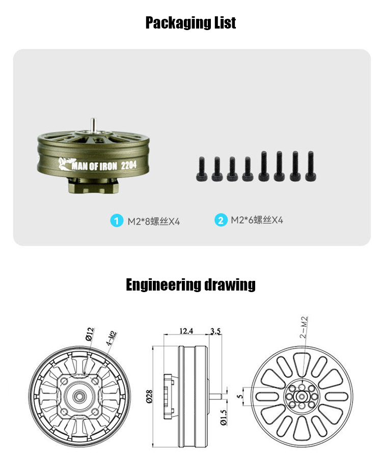 TOP2204 1900KV/2300KV 4-6S Brushless Motor for 3-5 inch FPV