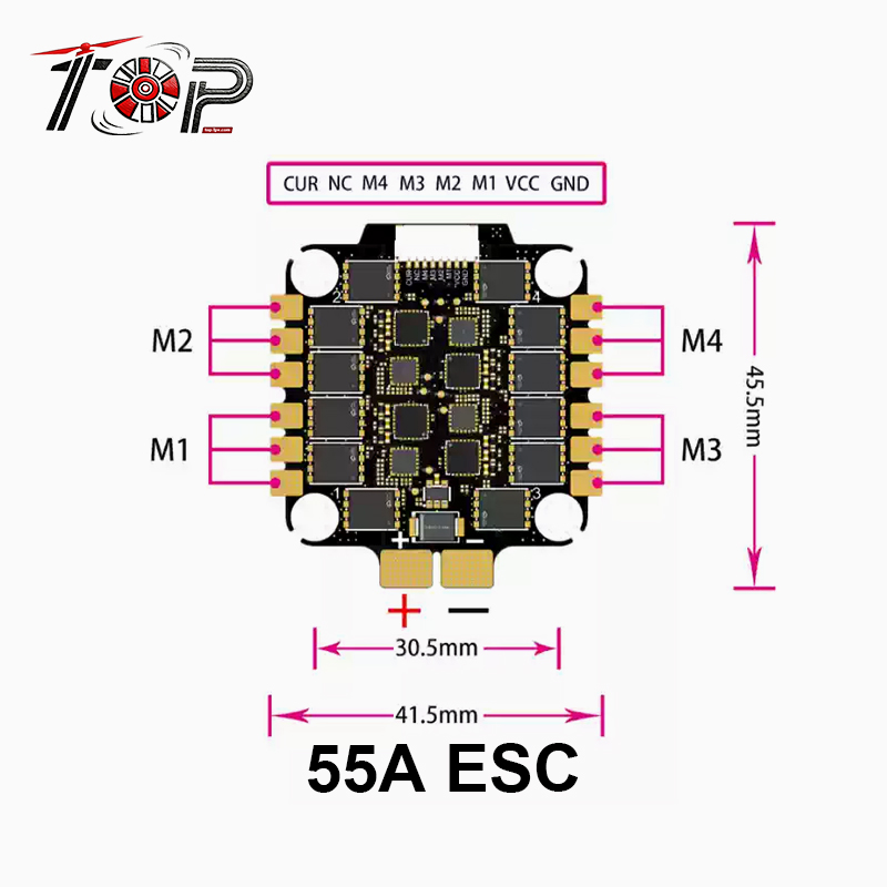 Type : TOP 55A Input Voits : 3-6s Size : 45.5*41.5*6.4mm Weight : 15.05g