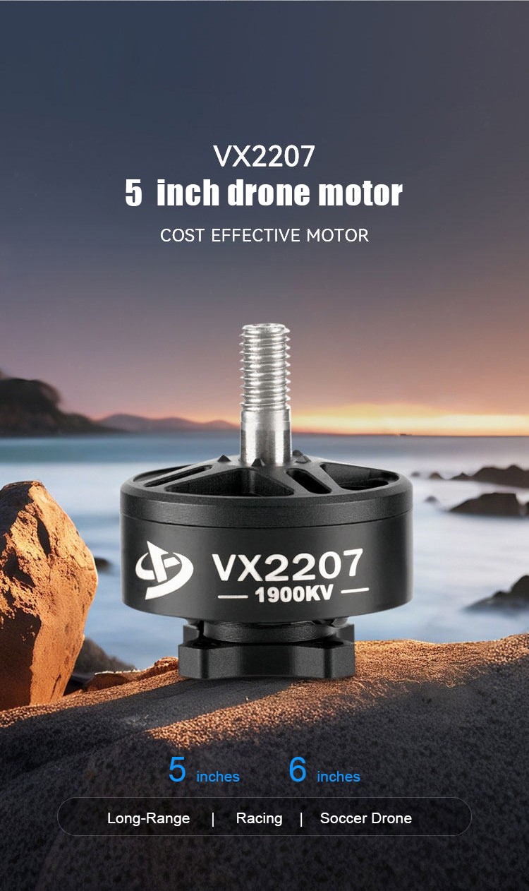 Type : TOP2207 KV(RPM/V) : 1900KV 2050KV 2450KV Max force : 2166g Input Voits : 4-6s Applcation : 5-6 inch FPV Size : 27.7 * 19.7mm Weight : 35.9g