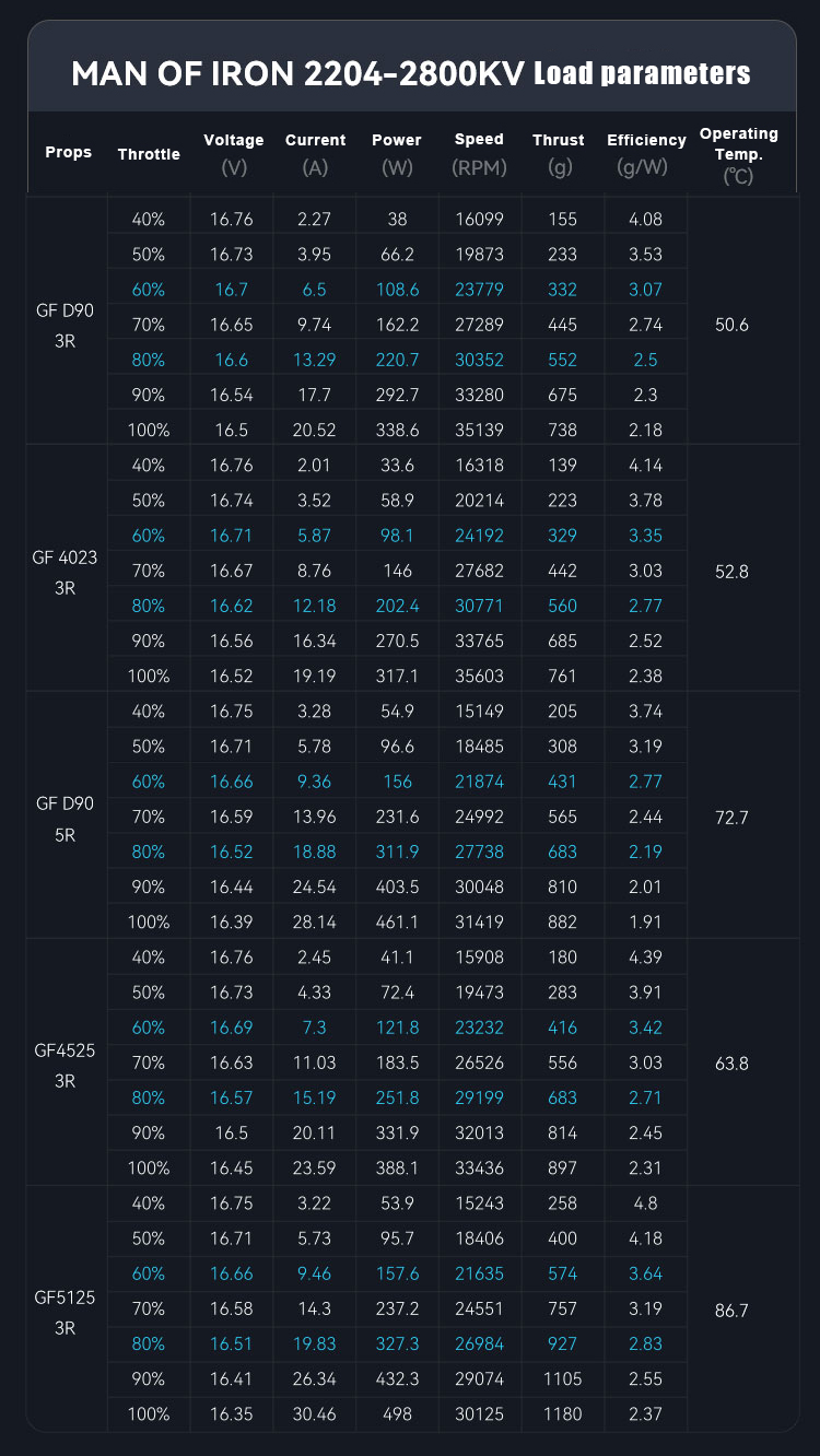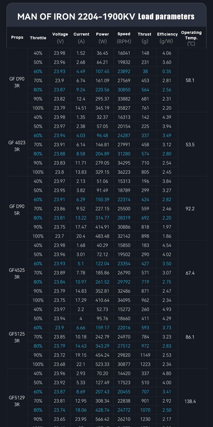 KV(RPM/V) : 1900KV 2300KV 2550KV 2800KV 3150KV 3600KV
