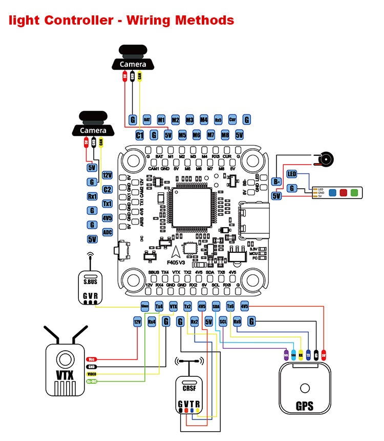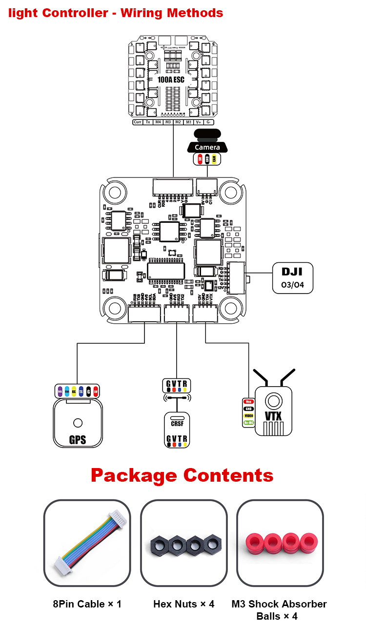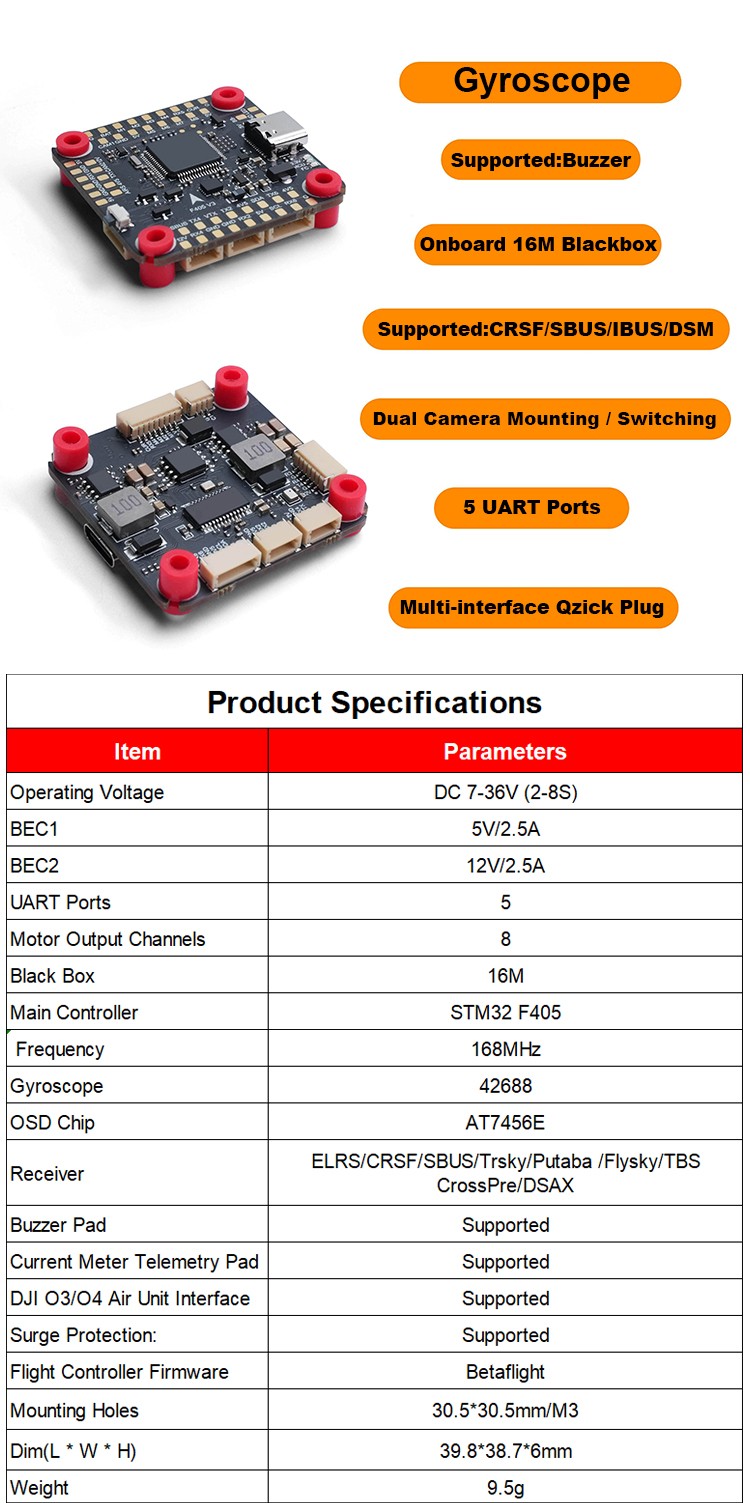 Type : TOP F405V3 Operating Voltage : DC 7-36V (2-8S) Black Box : 16M Main Controller :STM32 F405 Frequency :168MHz Gyroscope :42688/320X Mounting Holes : 30.5*30.5mm/M4