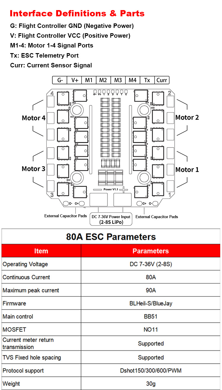 Type : TOP 80A Input Voits : 2-8s Size : 58*53.2*6.4mm Weight : 30g