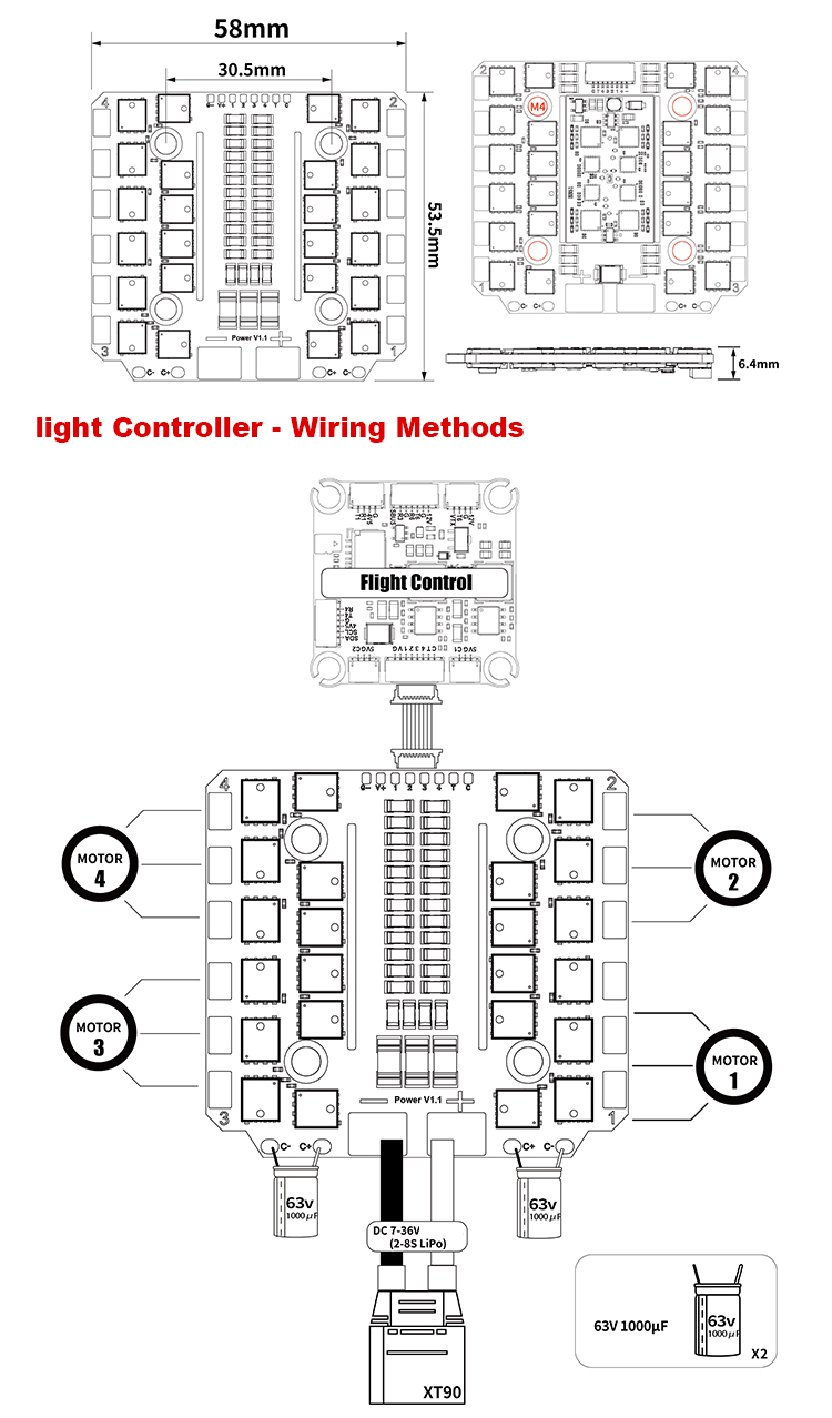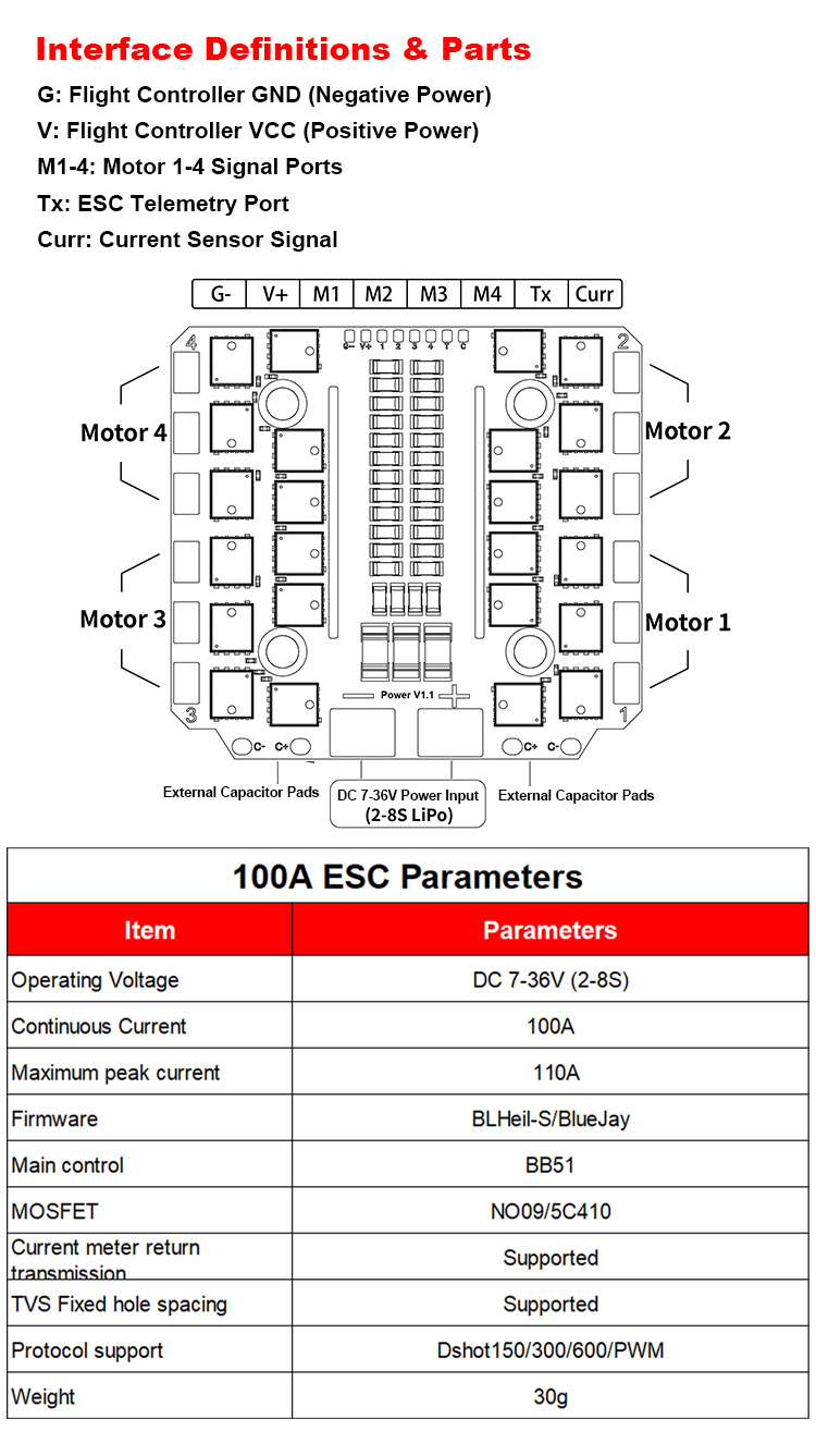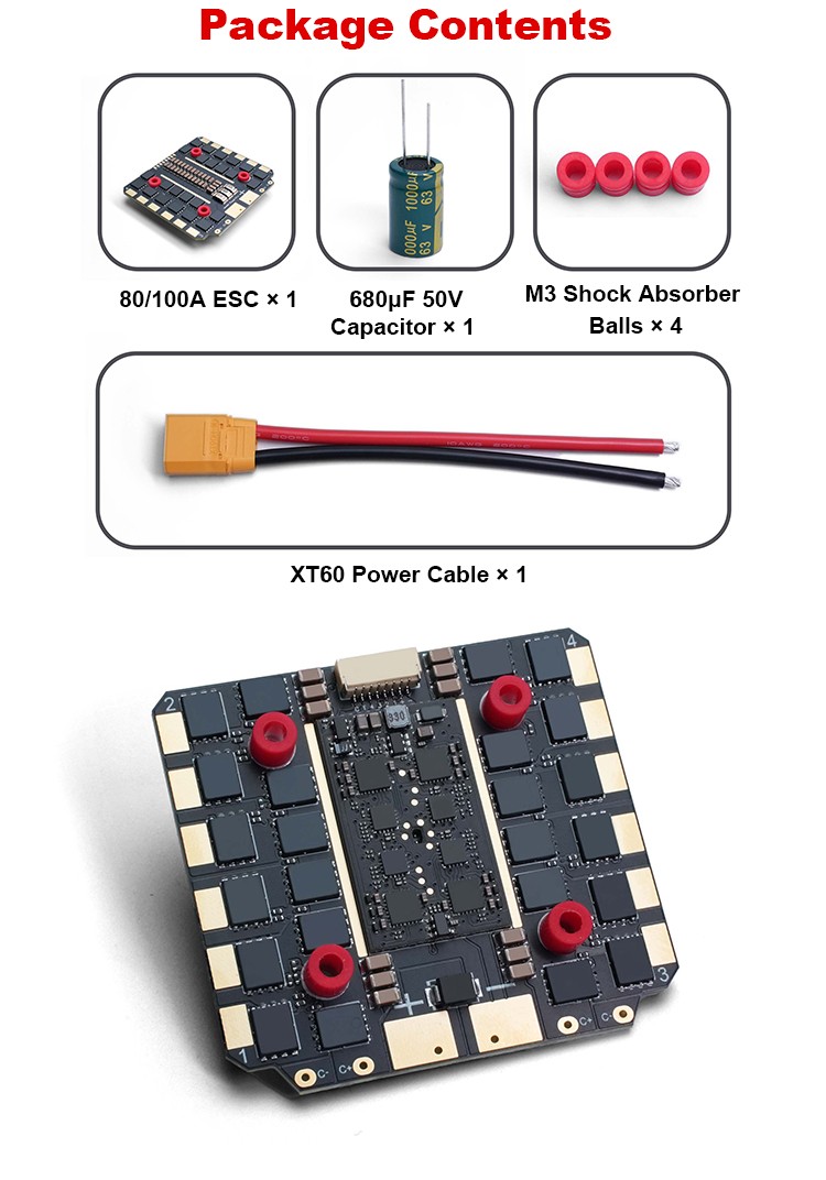 Type : TOP 100A Input Voits : 2-8s Size : 58*53.2*6.4mm Weight : 30g