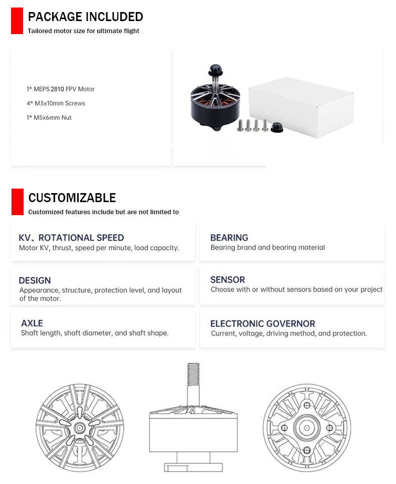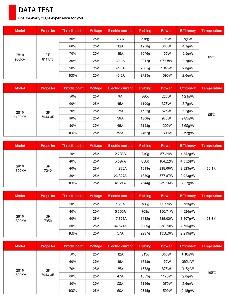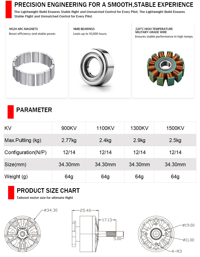 Type : TOP2810 KV:900KV / 1100KV / 1300KV / 1500KV Max.Pultling (kg):2.9kg Configuration(N/P):12/14 Size:34.30mm Weight:64g